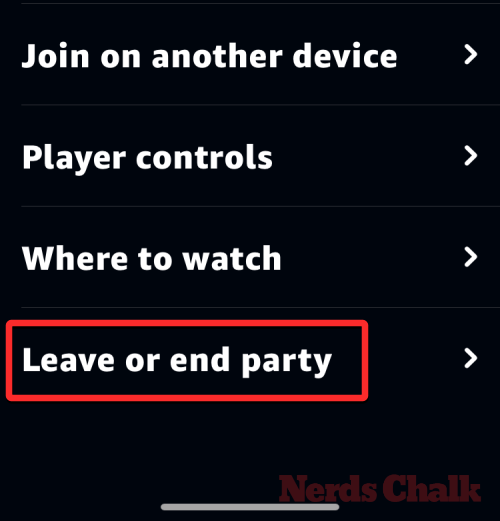 Inside Details, go to the Watch Party options section on Android or the Leave or End Party section on iOS.