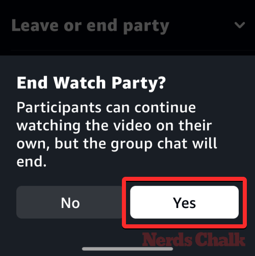 Now, depending on whether you want the Watch Party to continue or end after you leave, you can choose either of these options from the screen – Leave Watch Party or End Watch Party.