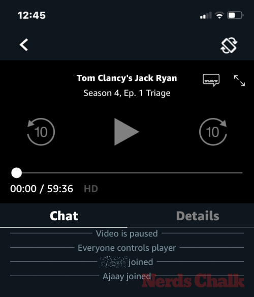 You will now enter the Watch Party session on your phone. Here, tap on the Details tab on the right.