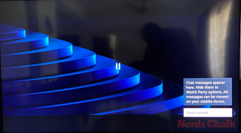 As a host, you can control the playback by tapping on Pause/Play or by moving the seeker to a specific portion of the content. When you do so, Prime Video will repeat this action for all devices that are part of the session. Others can also do the same if the host allows them to within a Watch Party session. When you or others play or pause content, others will be able to see who did the action within the Watch Party chat on the screen.
