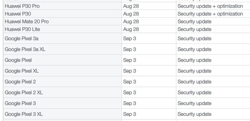 Above is yesterday’s ‘update schedule’ from Rogers that has now been redacted to remove Pixel 3 updates (in order to NOT mention the September 3rd as the official Android 10 release date, we presume).