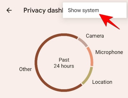Also by default, you won’t see the breakdown for which ‘System’ apps had access to your personal data. To change this, tap on the three dots at the top right corner.