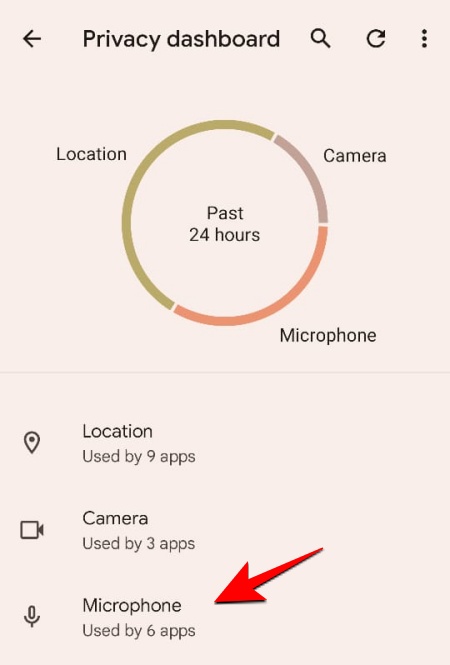 This will open up the ‘Permission history’ page. Here, we can see the apps that accessed the Microphone on the device in the past 24 hours and for how long.