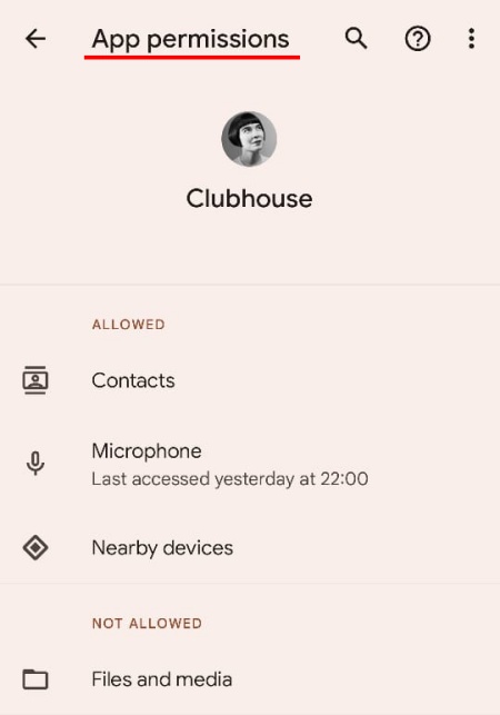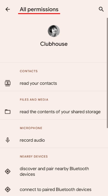 To check all the permissions that are being used by the app, tap on an app on the permission usage screen itself (Clubhouse, in our example).