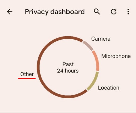 This is the space where you will see which permission has been accessed the most by apps on your phone in the past 24 hours, and the pie chart at the top gives you a nice visual of it.