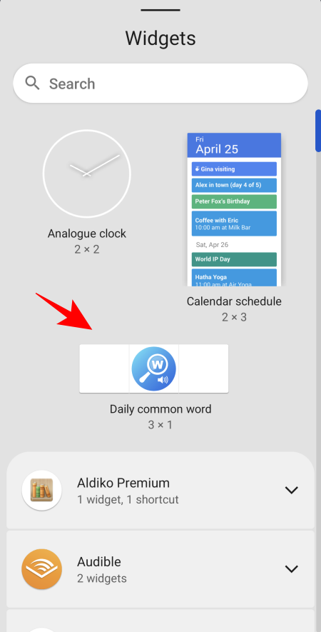 This will bring up the Widget picker screen. Here, you will find the search bar just under ‘Widgets’.