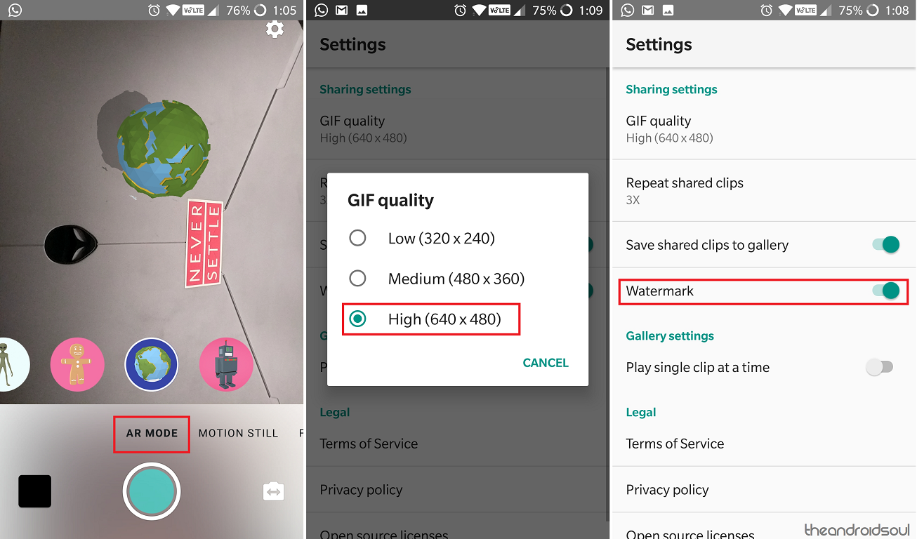 Additionally, you can change the quality of the GIF and even add a Watermark to your creations from the Settings.