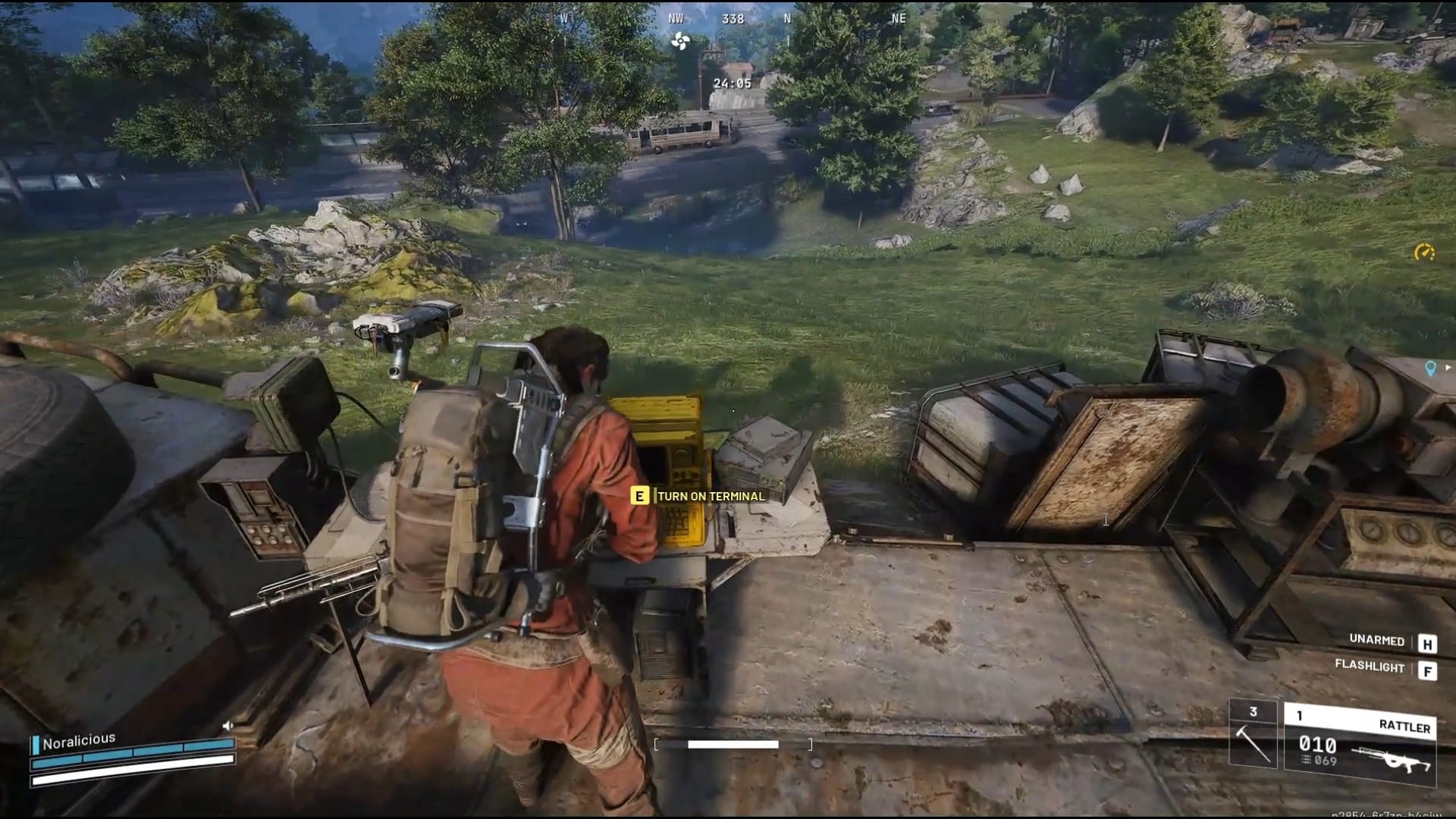 Head southwest of Olive Grove and ascend a hill to find a small camp with a yellow comms terminal. Interact with it to enable communications, completing this objective.