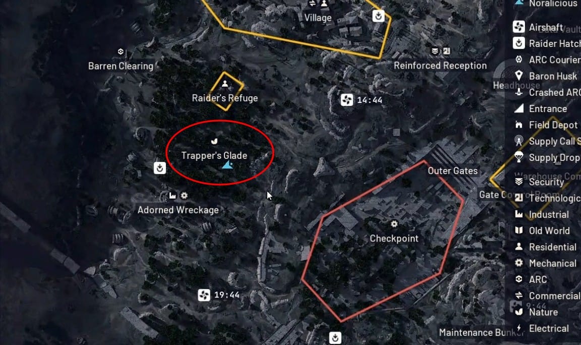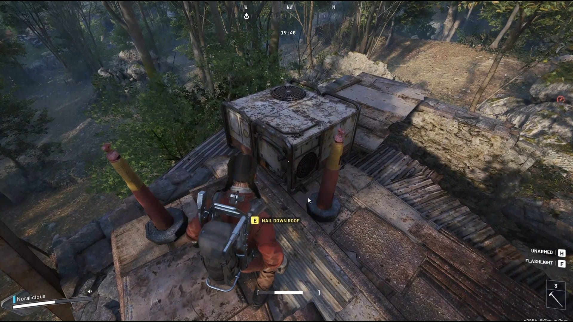 Reach Trapper’s Glade area and find the Raider structure, often near Raiders Refuge (above it on the map). Climb onto the roof and nail down the roof.