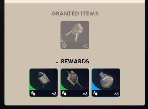 | 3x Shrapnel Grenades | Throwable grenades that explode and shed shrapnel to damage enemies nearby. Useful for crowd control. |