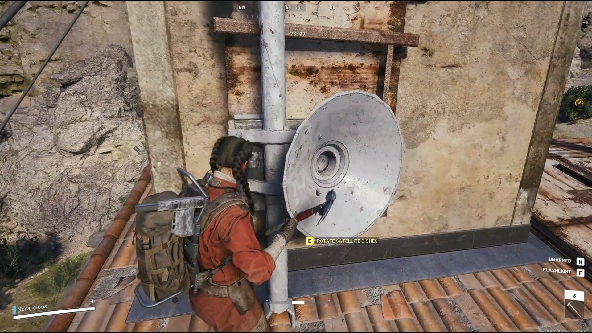 Go north of the Data Vault marker to a church complex. Climb up using nearby boxes and scaffolding to reach the roof. Interact with satellite dishes by rotating them at their control points scattered around the rooftop to complete this objective.
