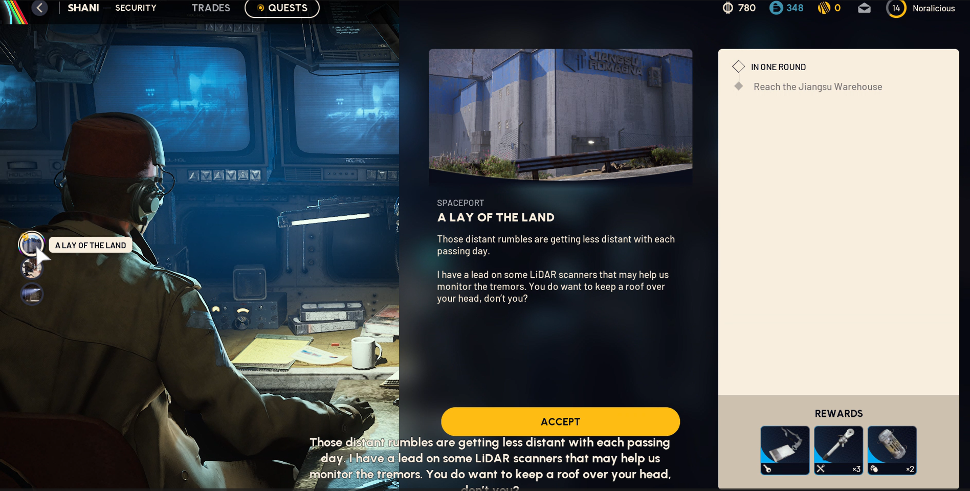 A Lay of the Land takes place in Spaceport. It starts from the Jiangsu Warehouse.