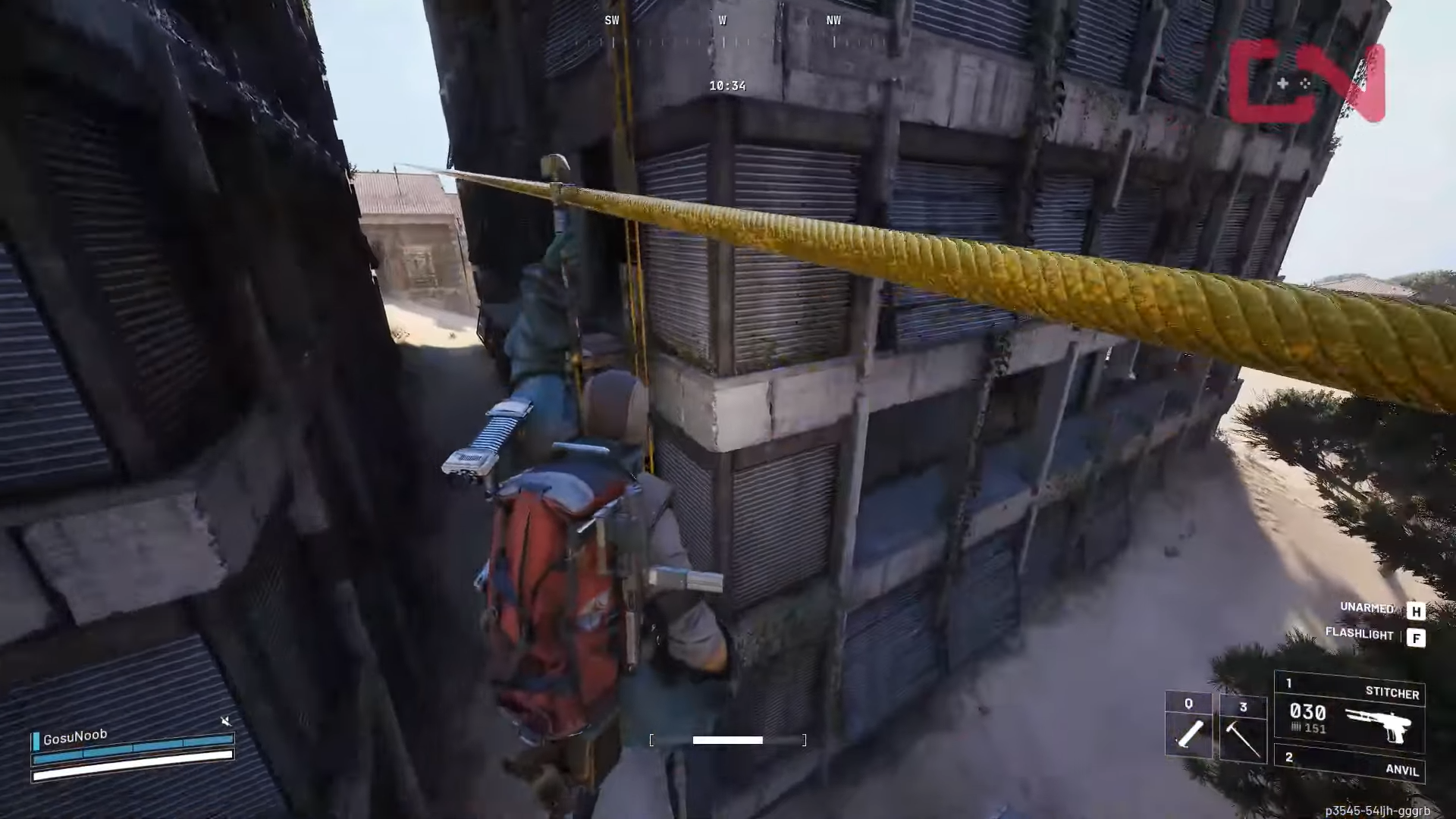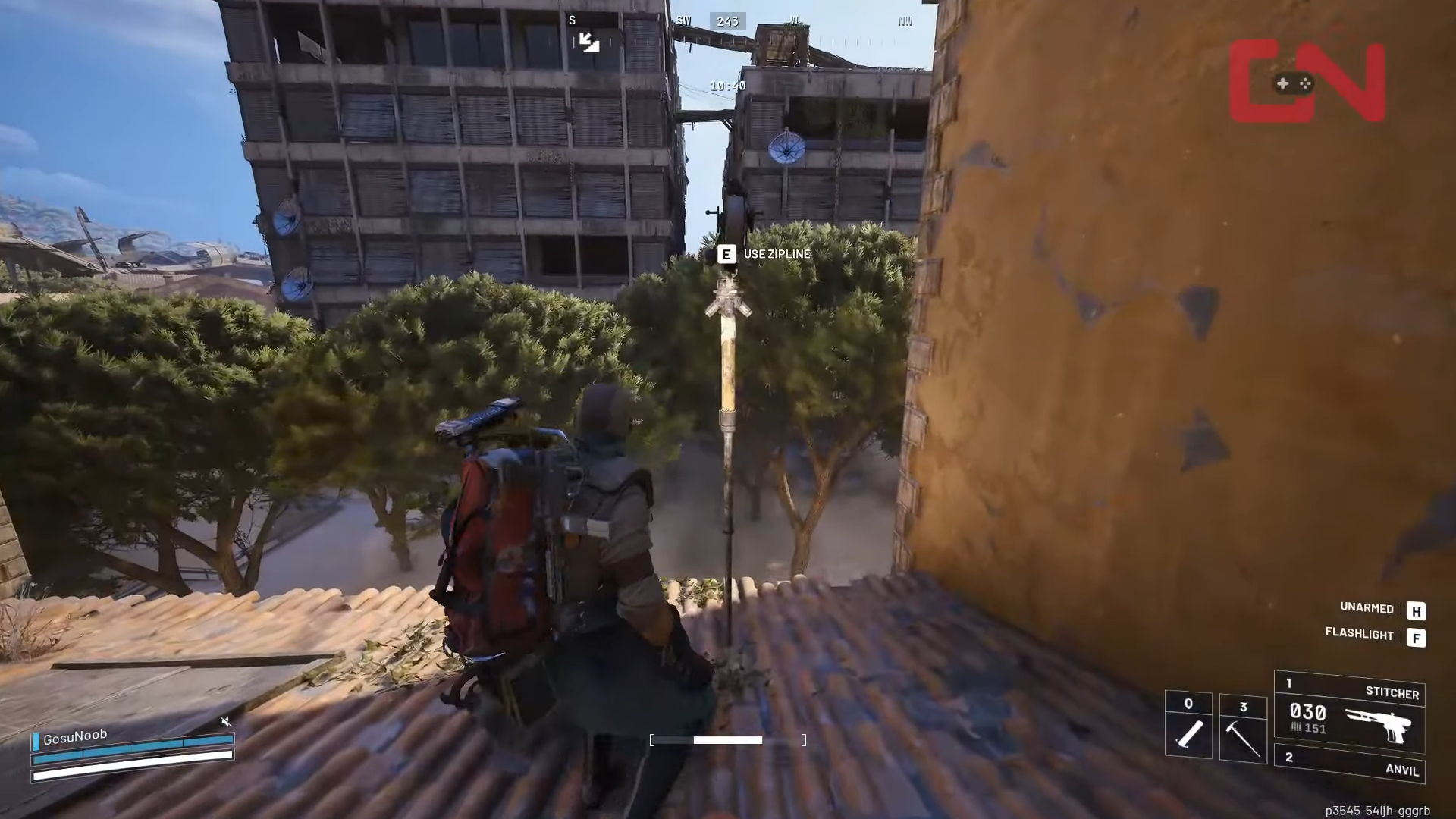 Jump off the zipline onto the platform to land inside the barricaded apartment.