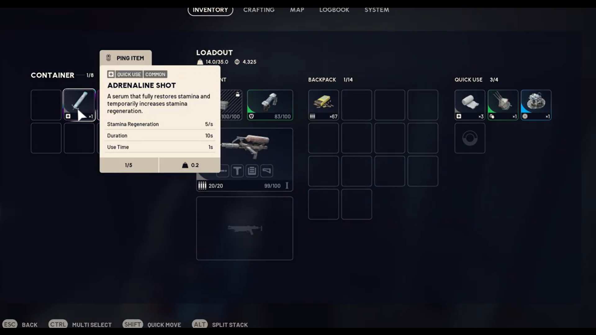 The Adrenaline Shot instantly restores full stamina and boosts regeneration—crucial during escape runs or long fights.