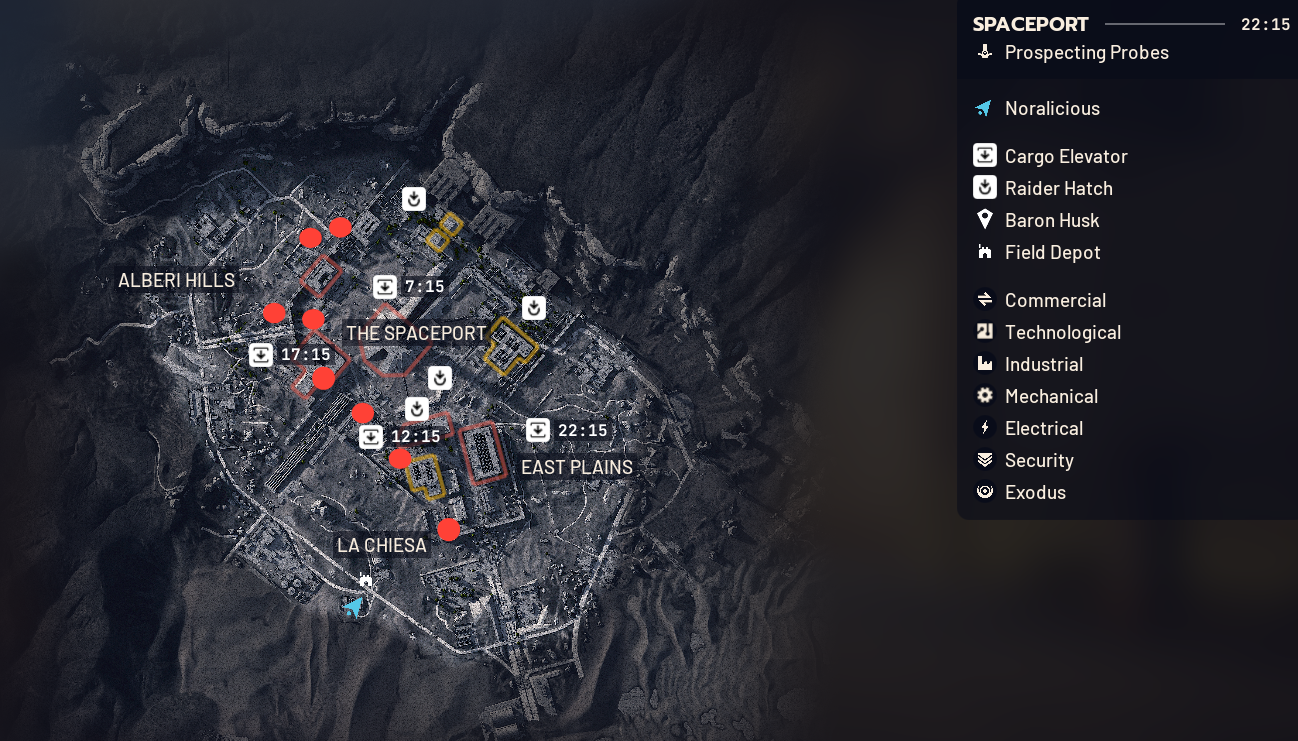 Spaceport is the most open and contested zone, filled with large loot pockets and exposed routes. Lockers here drop some of the rarest crafting materials.