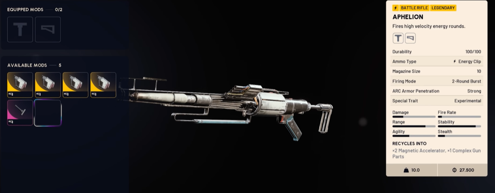 - Aphelion is a marksman-hybrid battle rifle that excels at very long range and rewards precision over rapid fire.
