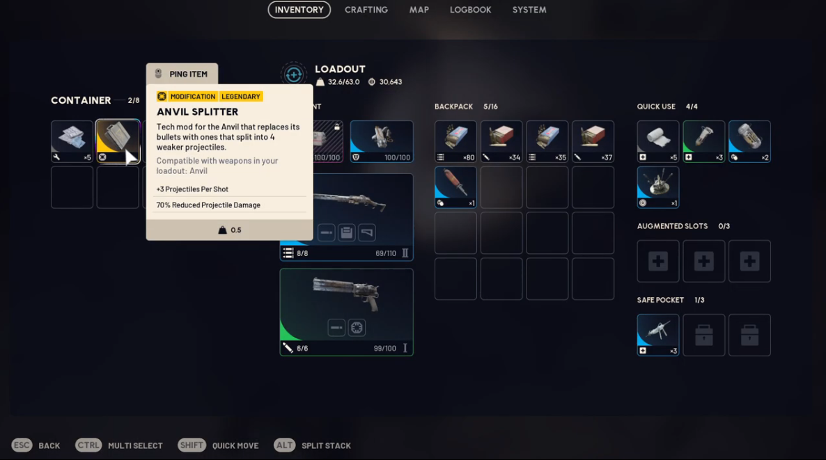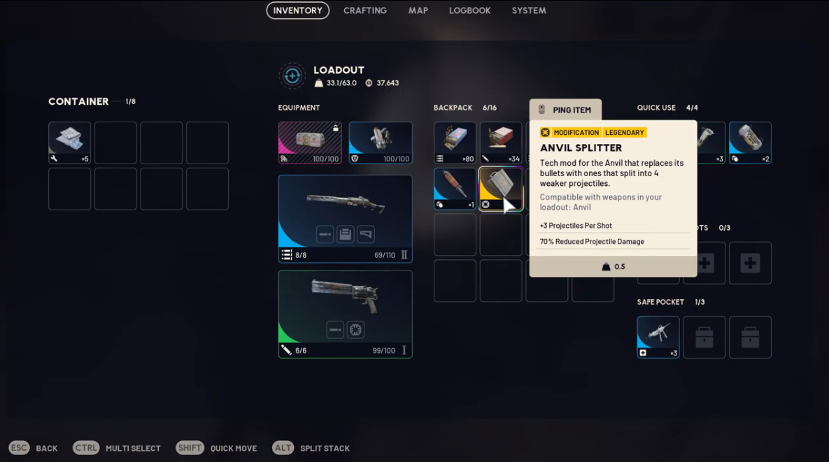 The Anvil Splitter is a powerful late-game modification that changes the Anvil’s firing pattern. Instead of single, high-damage bullets, it fires multiple weaker shots that excel at clearing groups, staggering enemies, and hitting targets at close to mid-range. While rare, it can spawn in several tech-oriented locations.