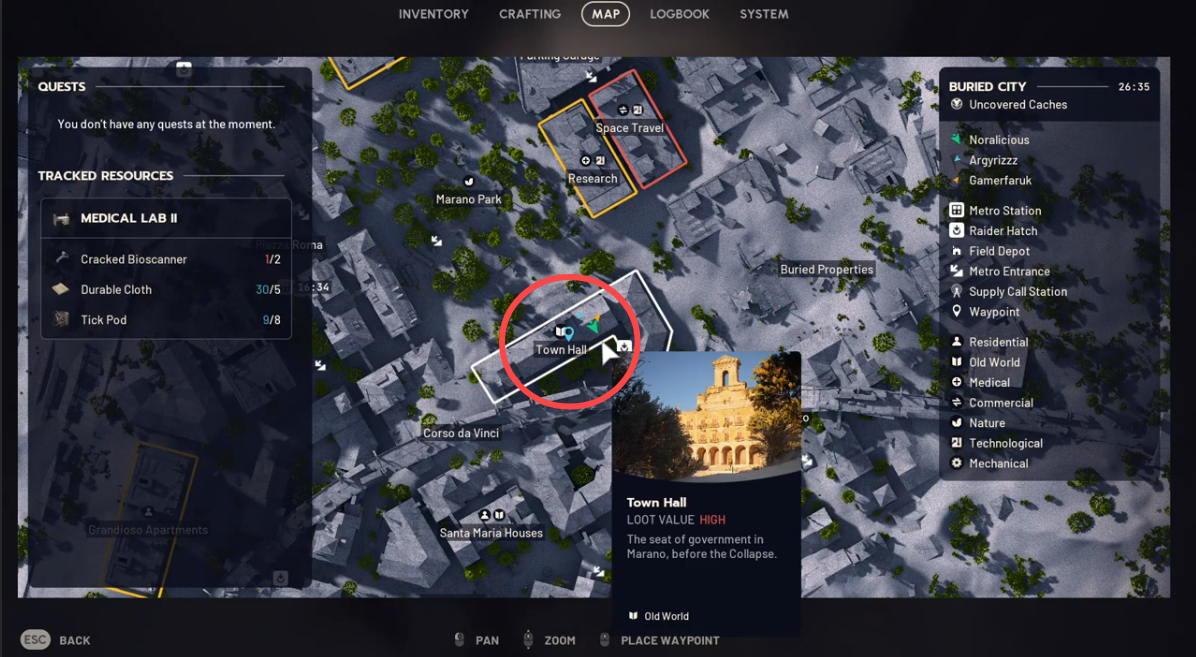 Head straight to the Town Hall building when your raid begins. This POI has multiple indoor rooms, high-tier loot spawns, and tech-friendly containers, making it one of the best spots for legendary mods like the Anvil Splitter.