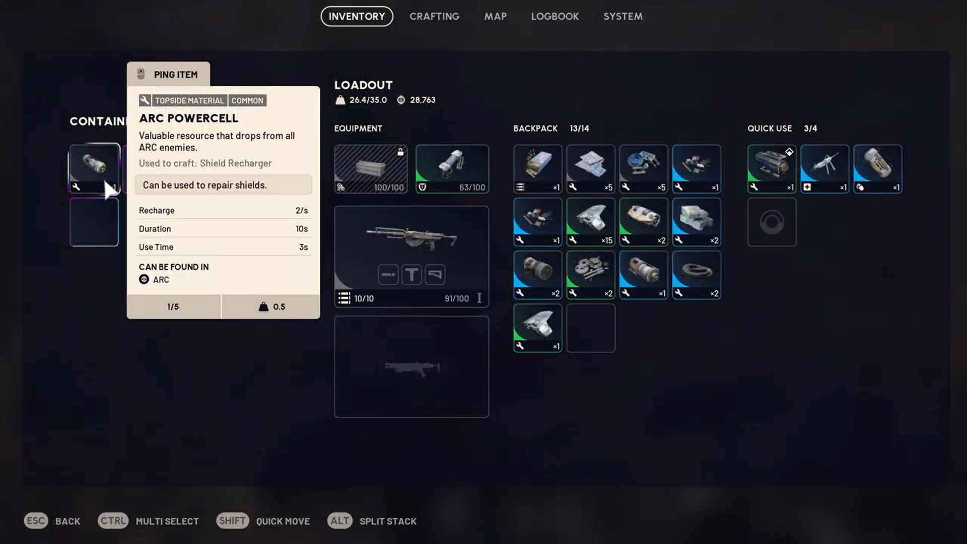 - 1× ARC Powercell + 5× Rubber Parts → 1× Shield Recharger.