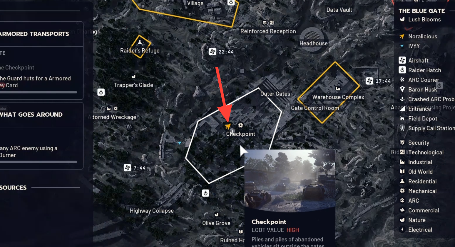 Head to the location in Checkpoint, marked on the map above and enter the small Guard hut, where you will find a folder on the table. Interact with the folder to grab the patrol car key card.