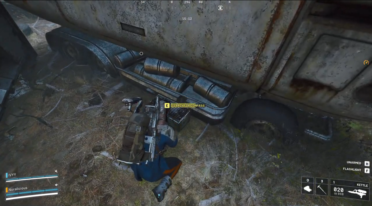 Find the Compass; search near the broken-down vehicles close to the Scrap Yard’s outer edge. Interact with the glowing object to collect it.