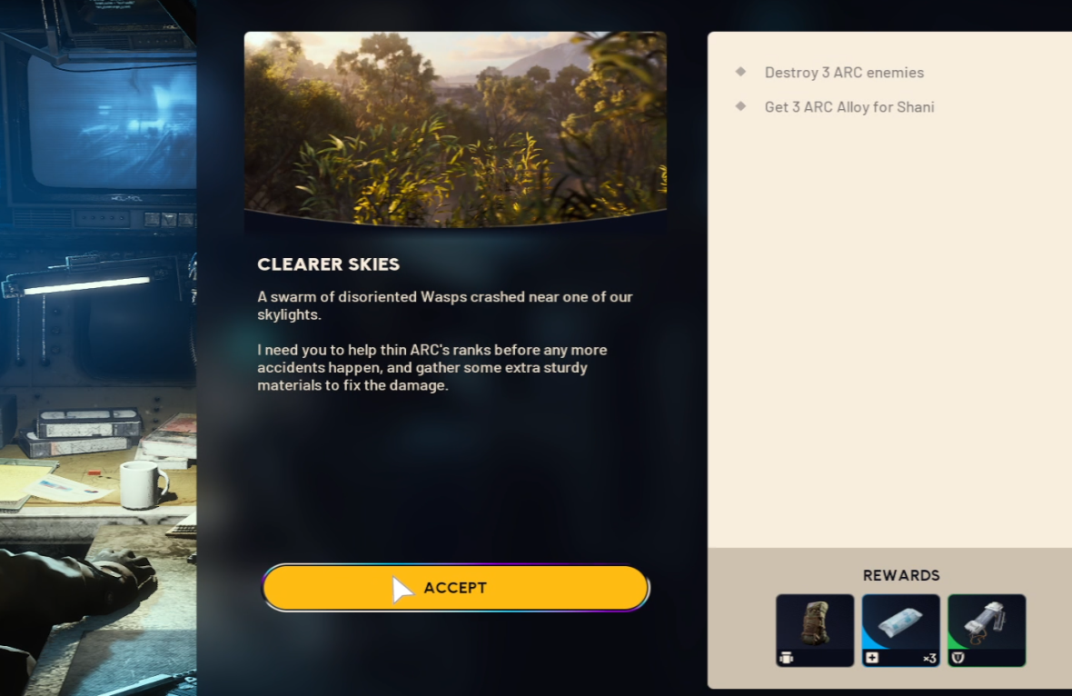 The Clearer Skies quest is one of the first quests in ARC Raiders, given by the NPC Shani. This guide will take you through its objectives, the rewards, and walk you through the quest step by step.
