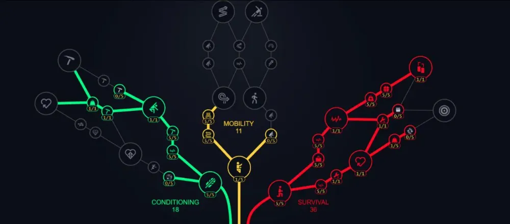 - Skill Tree Builds: You spend experience points in three main skill branches—Conditioning, Mobility, and Survival—to tailor your Raider’s strengths.