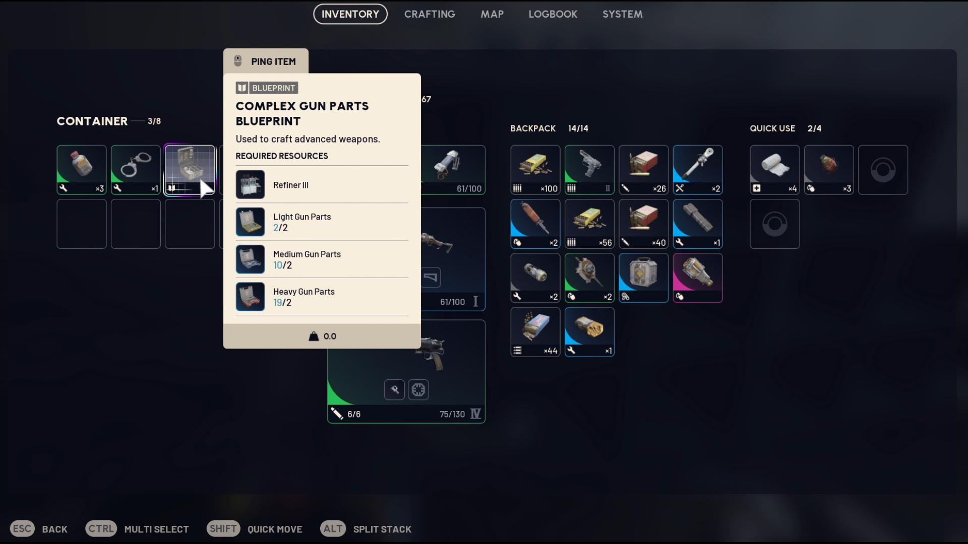 Once you have the Complex Gun Parts blueprint, move it from the Stash to the Inventory. Then right-click on it and select "Learn and Consume". Then, access the Refiner 3 workshop and use the unlocked blueprint to craft Complex Gun Parts.