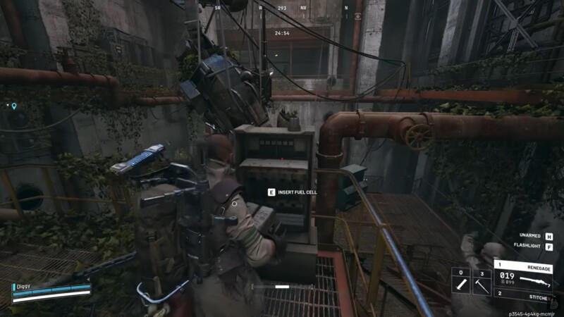 With the battery in hand, move upstairs to the designated power console. There is a clearly marked slot where the power cell must be inserted.