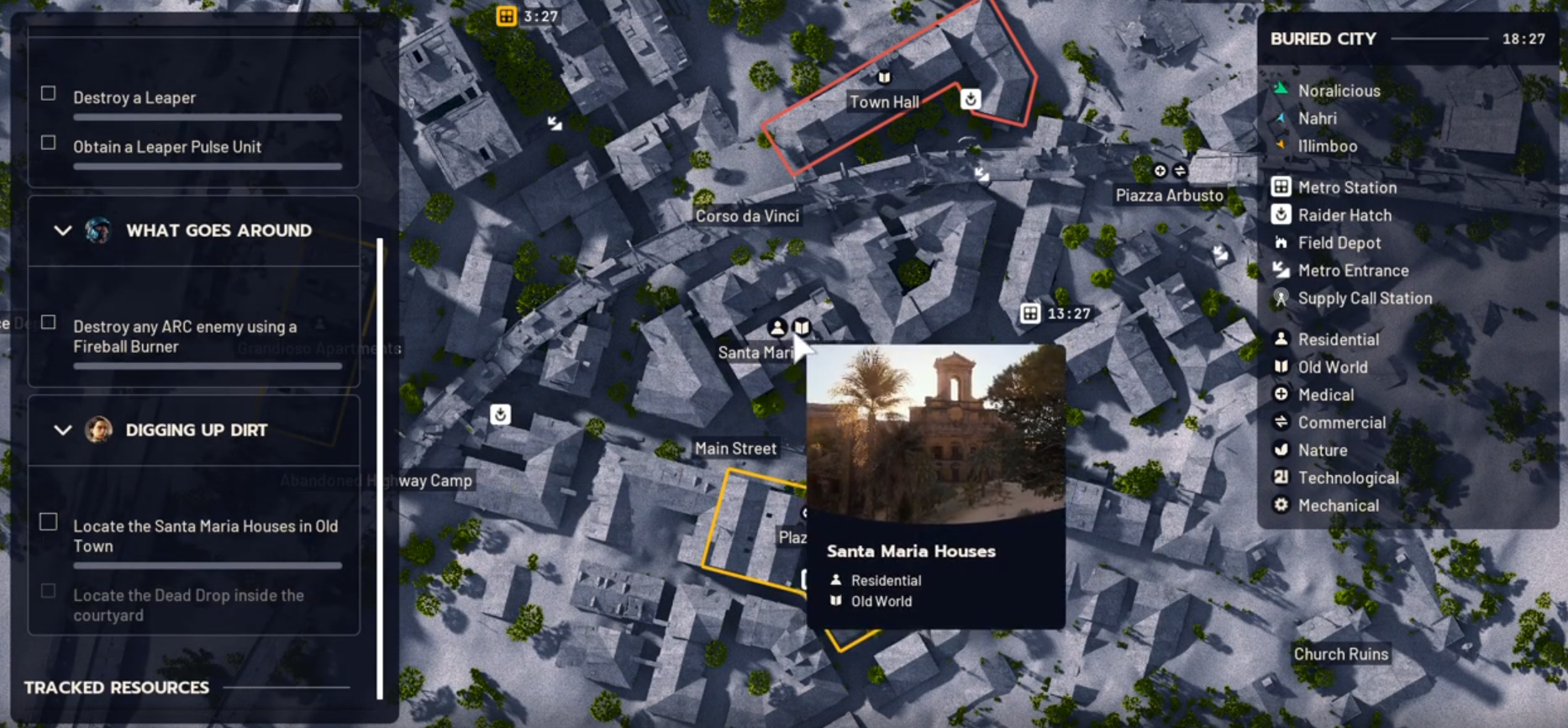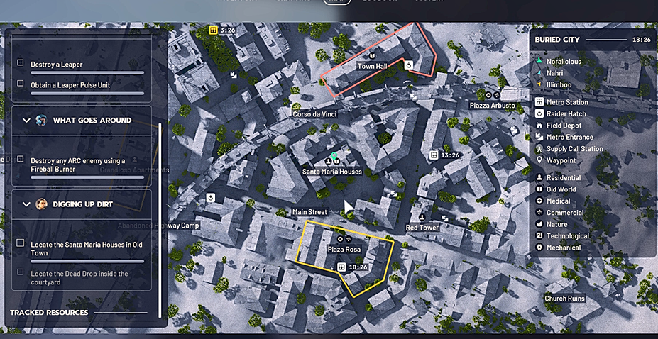 Your search starts with receiving intel about a suspected dead drop at Santa Maria Houses, a residential section of the Old World zone in Buried City. This mission blends stealthy reconnaissance and careful exploration, and both map and quest cues help you locate the right building and its courtyard.