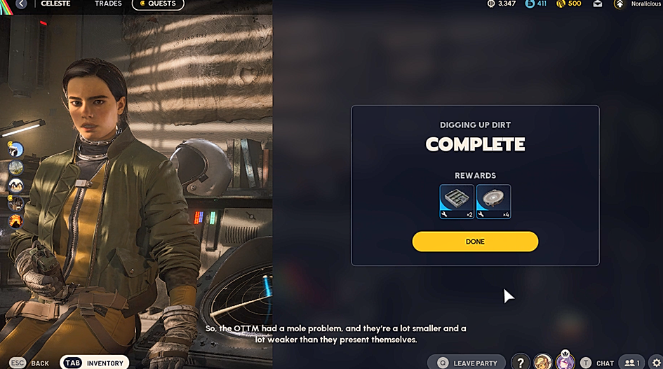 Collect the item and receive mission confirmation. This concludes the quest portion—optional: loot the area for extra crafting materials. Claim your rewards from Celeste.