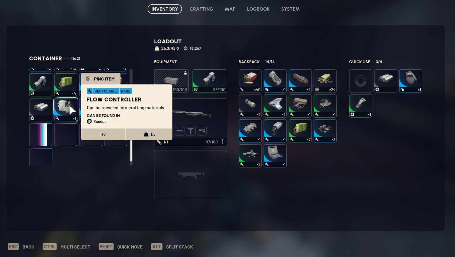 The Flow Controller is an industrial device that appears as a scavengable object across Exodus. While it has no direct gameplay function, it is one of the more efficient items for recycling into mechanical components, making it useful for crafting upgrades, gear parts, and advanced materials.