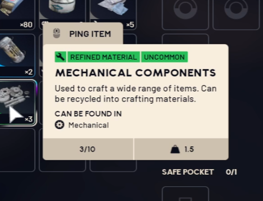 Pro Tip: Mechanical Components are quite a versatile resource. The best way to source them is by crafting them via the Refiner workbench.