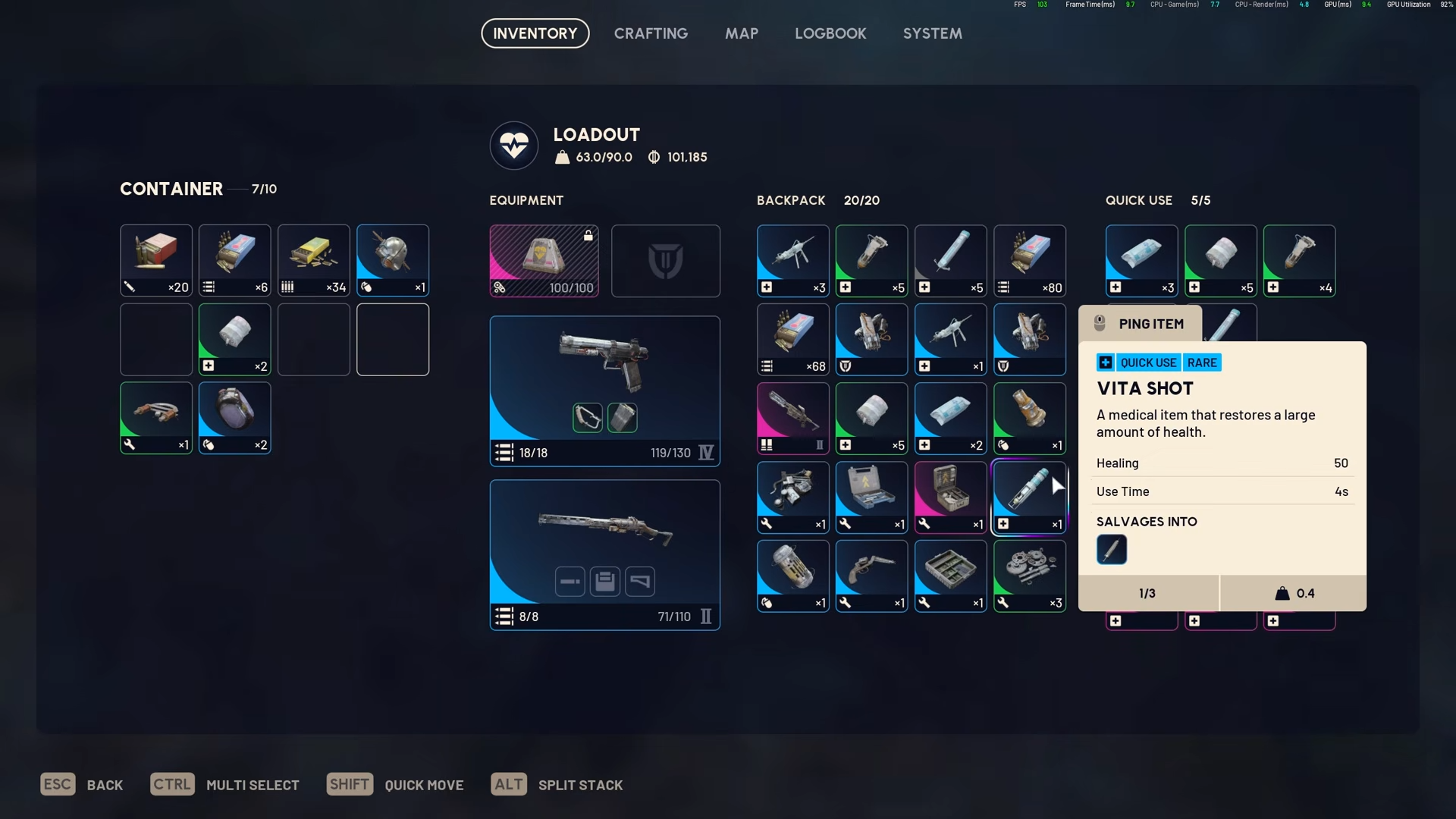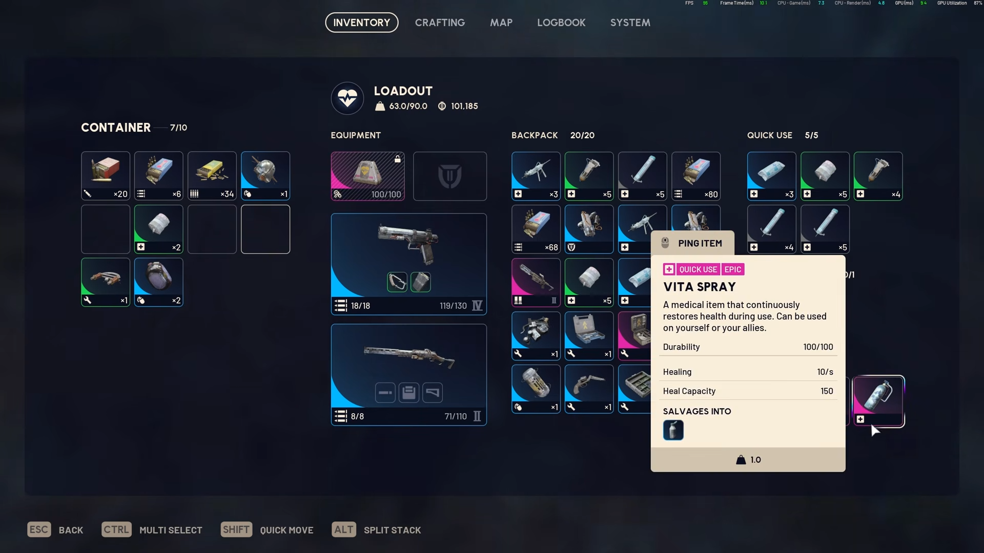 Keep an eye on your inventory as you pick up guns, grenades, and Vita sprays. If you overload, you will be forced to drop some of the highest‑value items. It is often better to take one or two very good guns plus a few Vita sprays and components than to cram every slot and lose a high‑tier weapon you cannot extract.