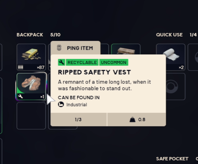 There, you can search the abandoned backpack and get a ripped safety vest easily.