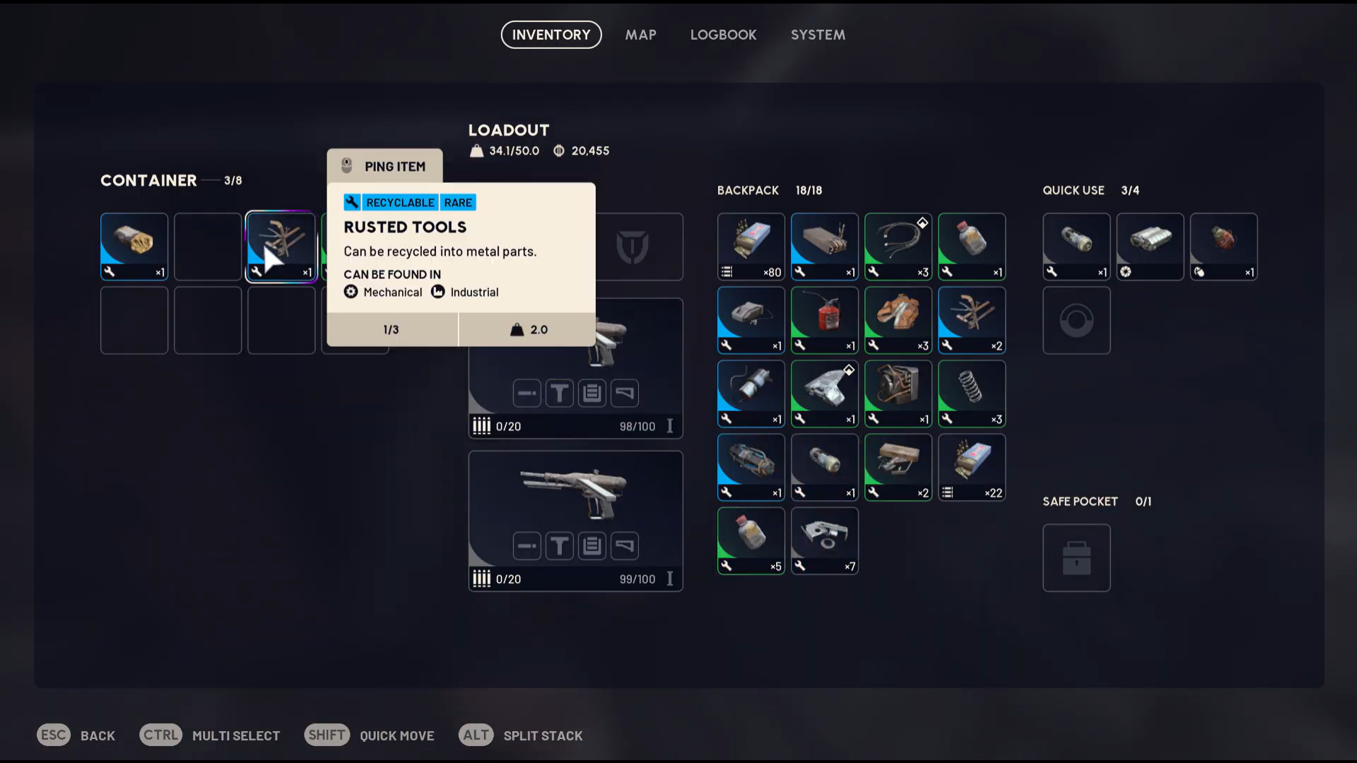 - Always store Rusted Tools in your Safe Pocket if you plan to continue exploring.