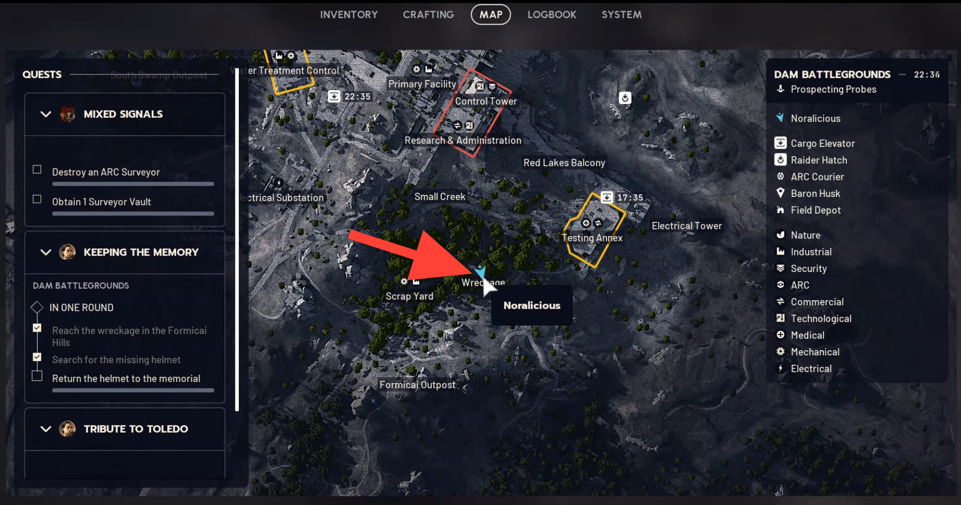 The "Keeping the Memory" quest in Arc Raiders requires finding a missing helmet in the Wreckage, an area characterized by the remains of a giant spider-shaped ARC and scattered debris in the Formicai Hills of the Dam Battlegrounds. The helmet is cleverly hidden in a small bush near the destroyed Baron Husk wreckage, making it easy to overlook.