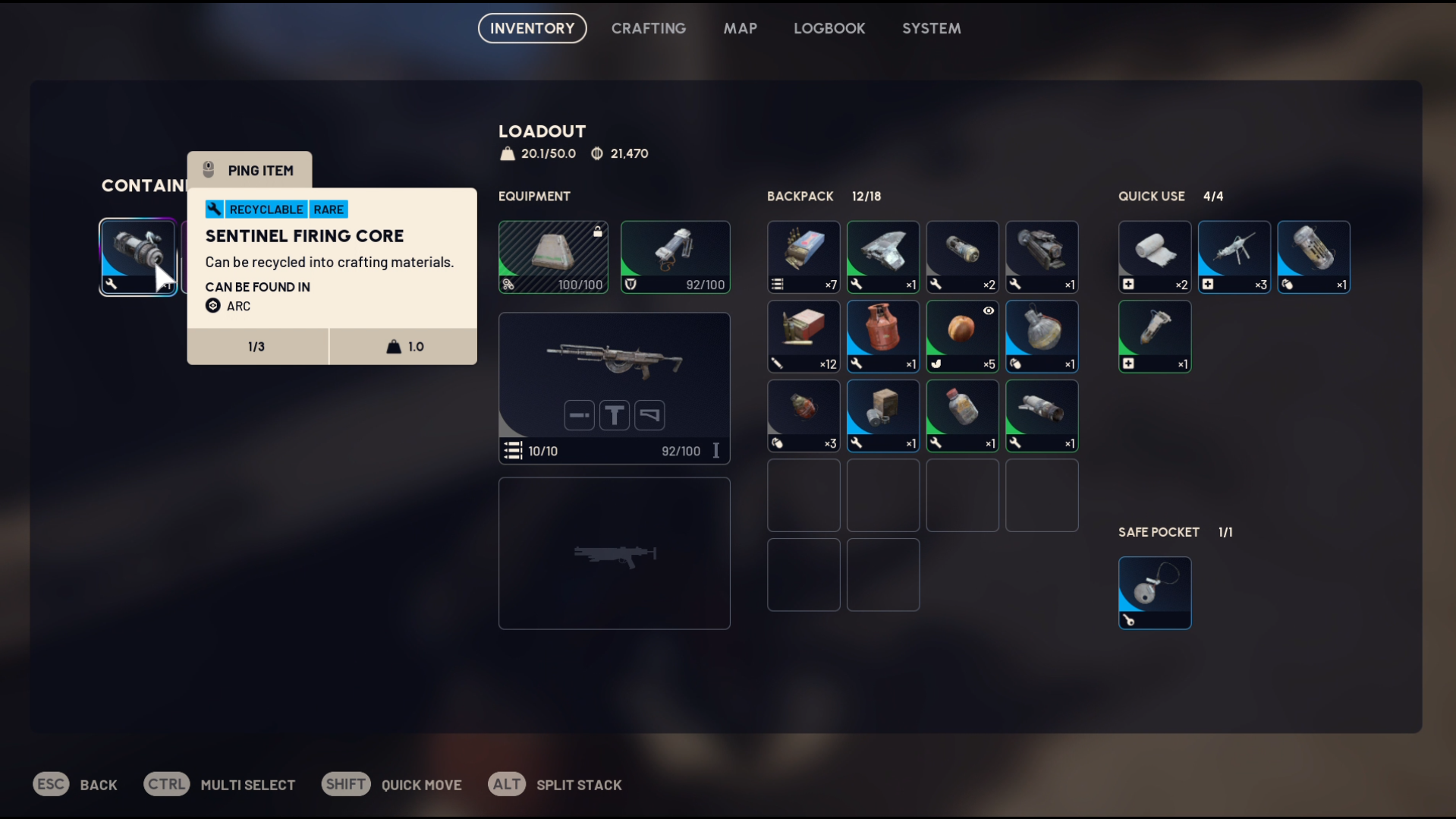 ARC Enemy Sentinel loot and drops