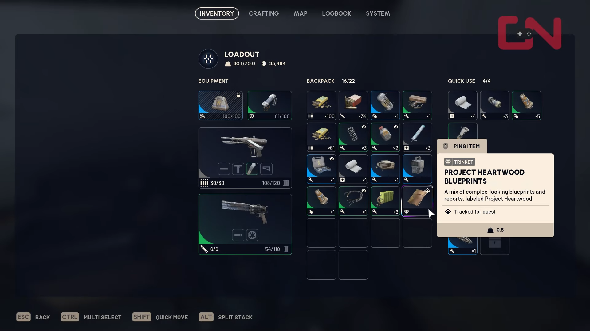 Pick up the Project Heartwood Blueprints quest item.