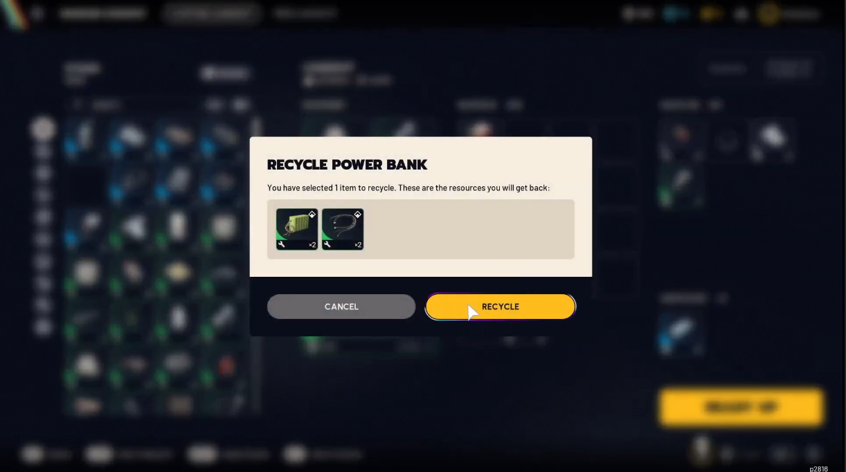 Obtain 1 Battery — search near energy cores or abandoned tech crates. Or obtain it by recycling a Power Bank.