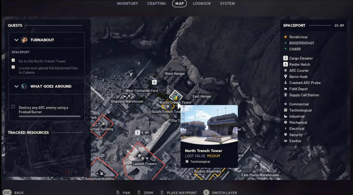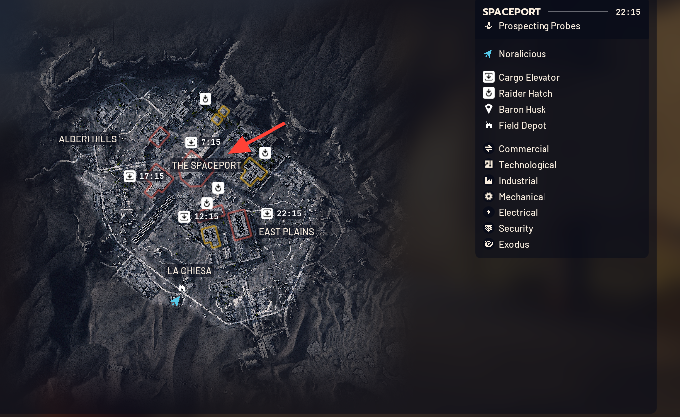 - Landmarks: Look for a tall metallic structure with satellite dishes and red security lights, that’s your entry point. The tower sits north of the main Spaceport landing field.