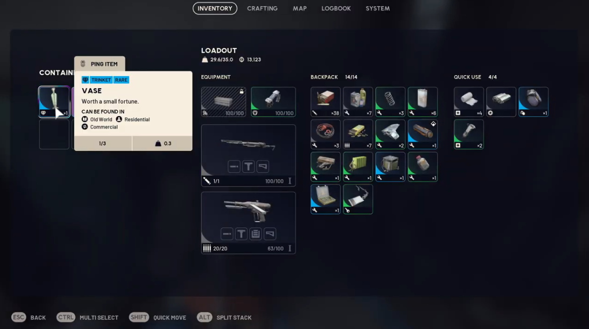 - Prioritise residential/commercial zones where trinkets spawn rather than heavy combat zones.