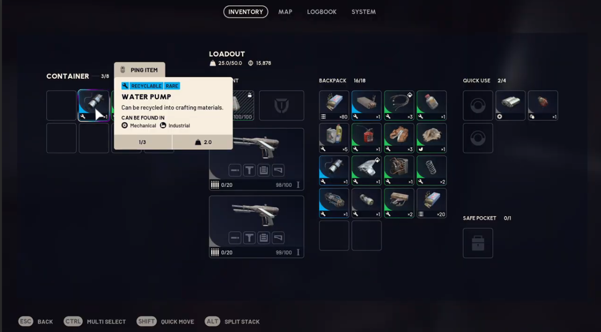 - Keep inventory spaces free for heavier items like the Water Pump (~2 kg) so you don’t miss the spawn because you’re full.