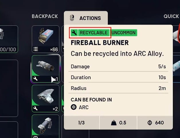 Not all items ought to be recycled, and some should be kept despite their recyclable status. Make sure to read the item tags and calculate component value against selling prices and keep strategic reserves.