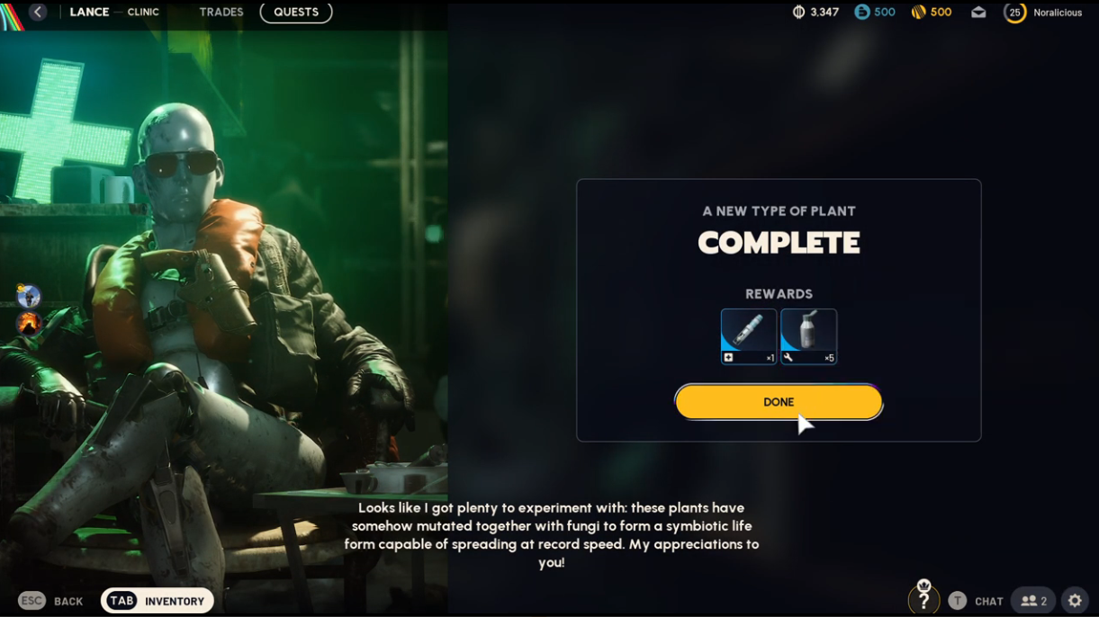 Collect Samples: Gather plant samples for Lance’s analysis (you’ll see a progress bar for completion). Once all samples are gathered, your mission will update automatically.