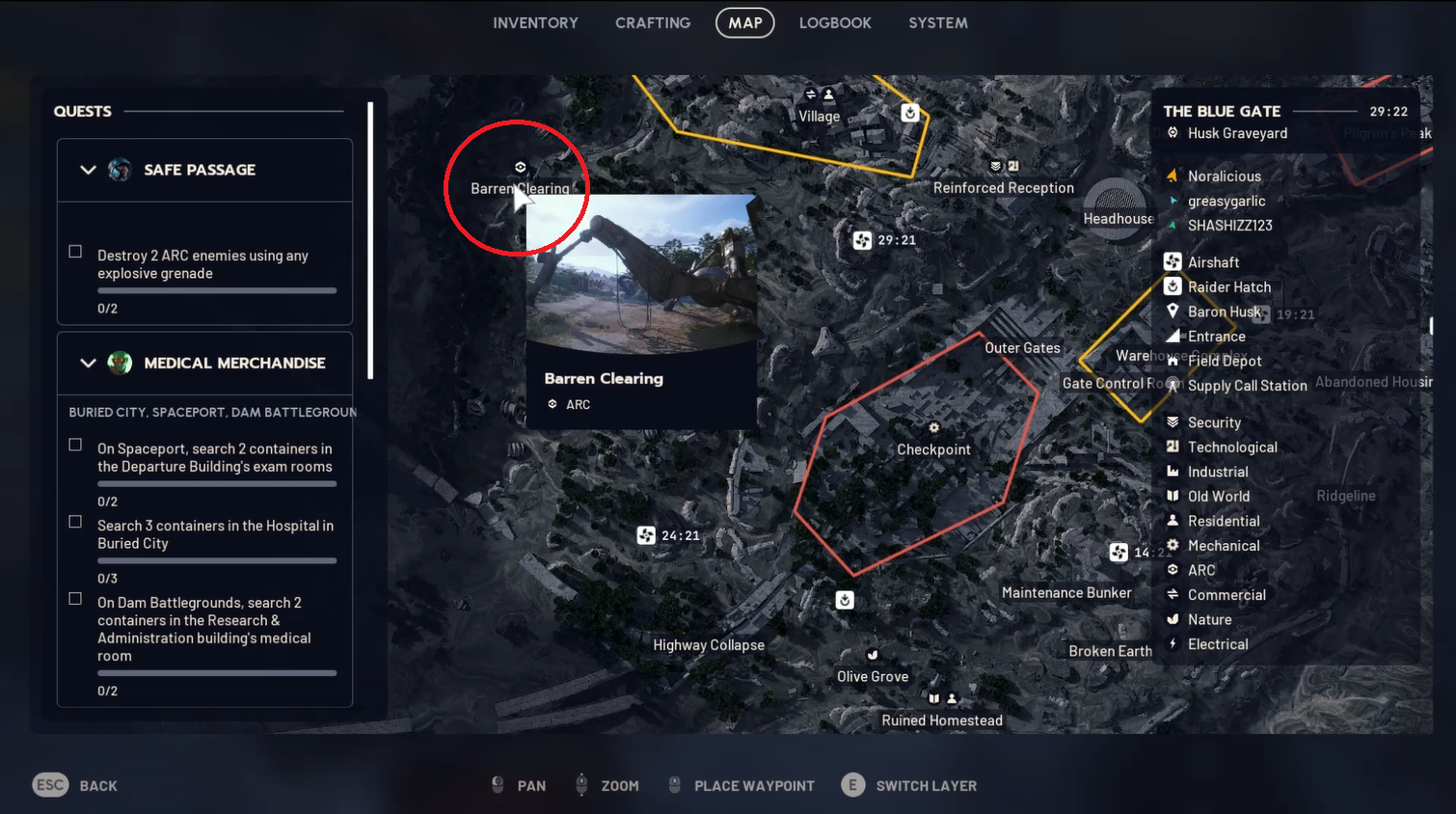 Travel to the Blue Gate region and locate the Barren Clearing marked on your map.