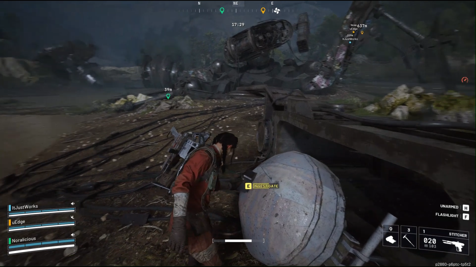 Approach the downed ARC machine.