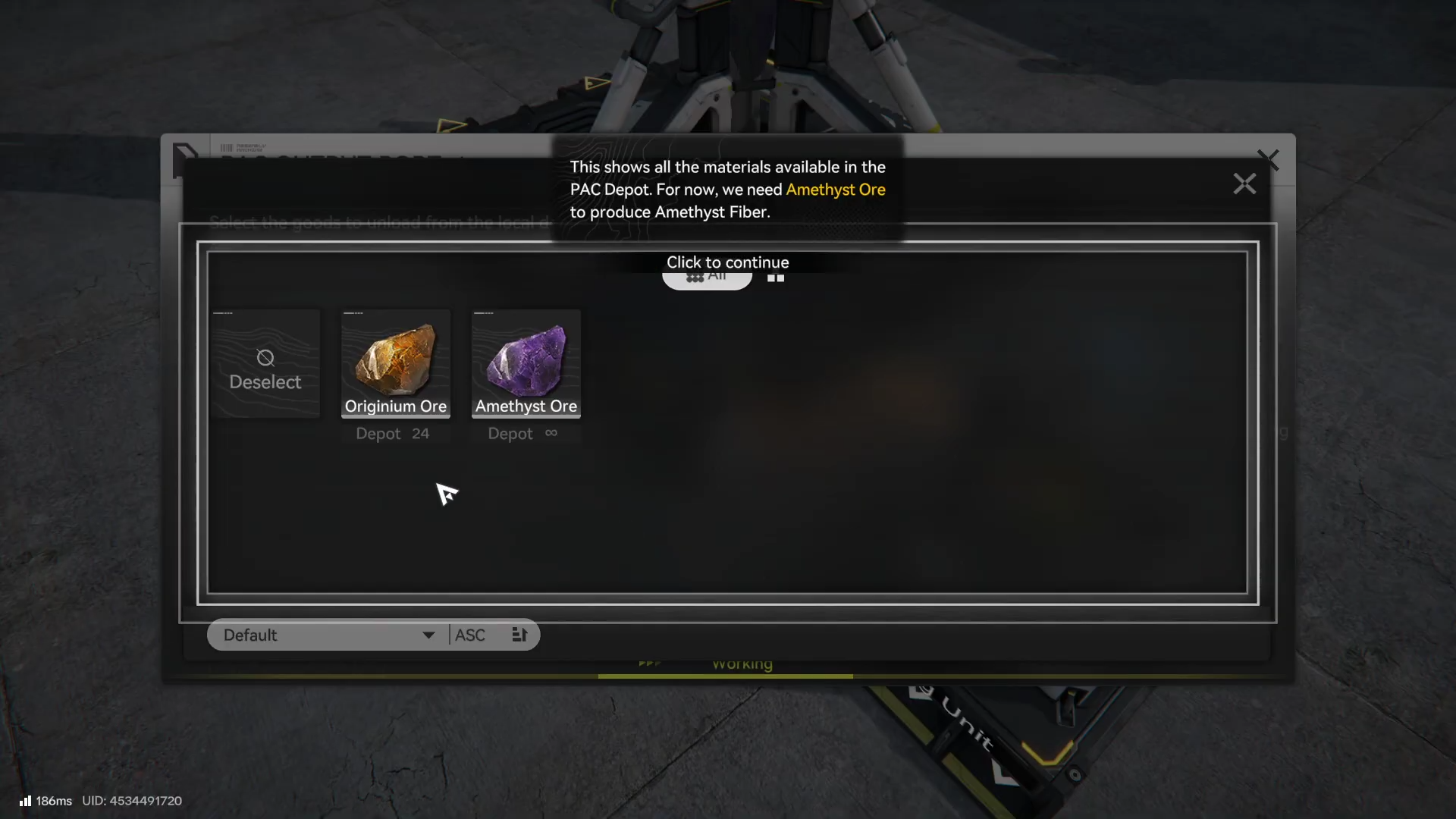 Check AIC storage for enough Amethyst Fiber produced earlier from Amethyst Ore.