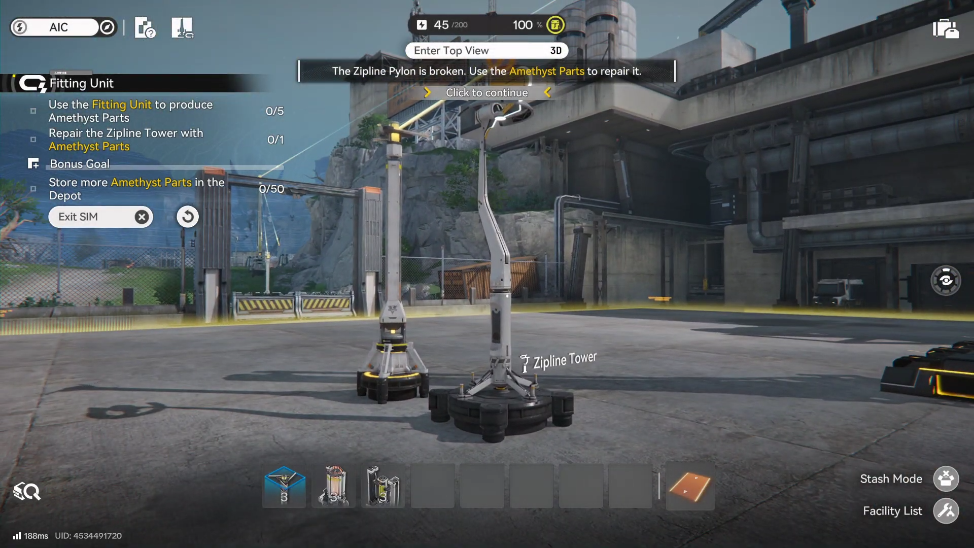 Some objectives directly reference Amethyst Parts as repair materials, such as fixing a Zipline Tower in certain Endfield clips.