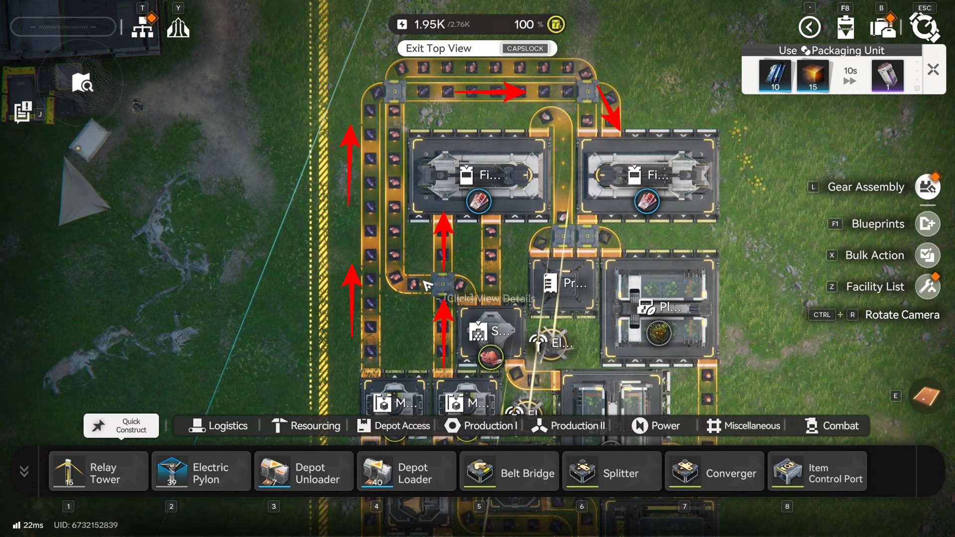 Make sure both filling units are receiving bottles and powder, and confirm both outputs are successfully entering the Protocol Stash. Confirm you’re not approaching a plant storage cap, because that’s an easy silent failure that looks like a belt issue. Finally, confirm your grid can sustain the ~140 power draw continuously rather than only from short-term reserves.